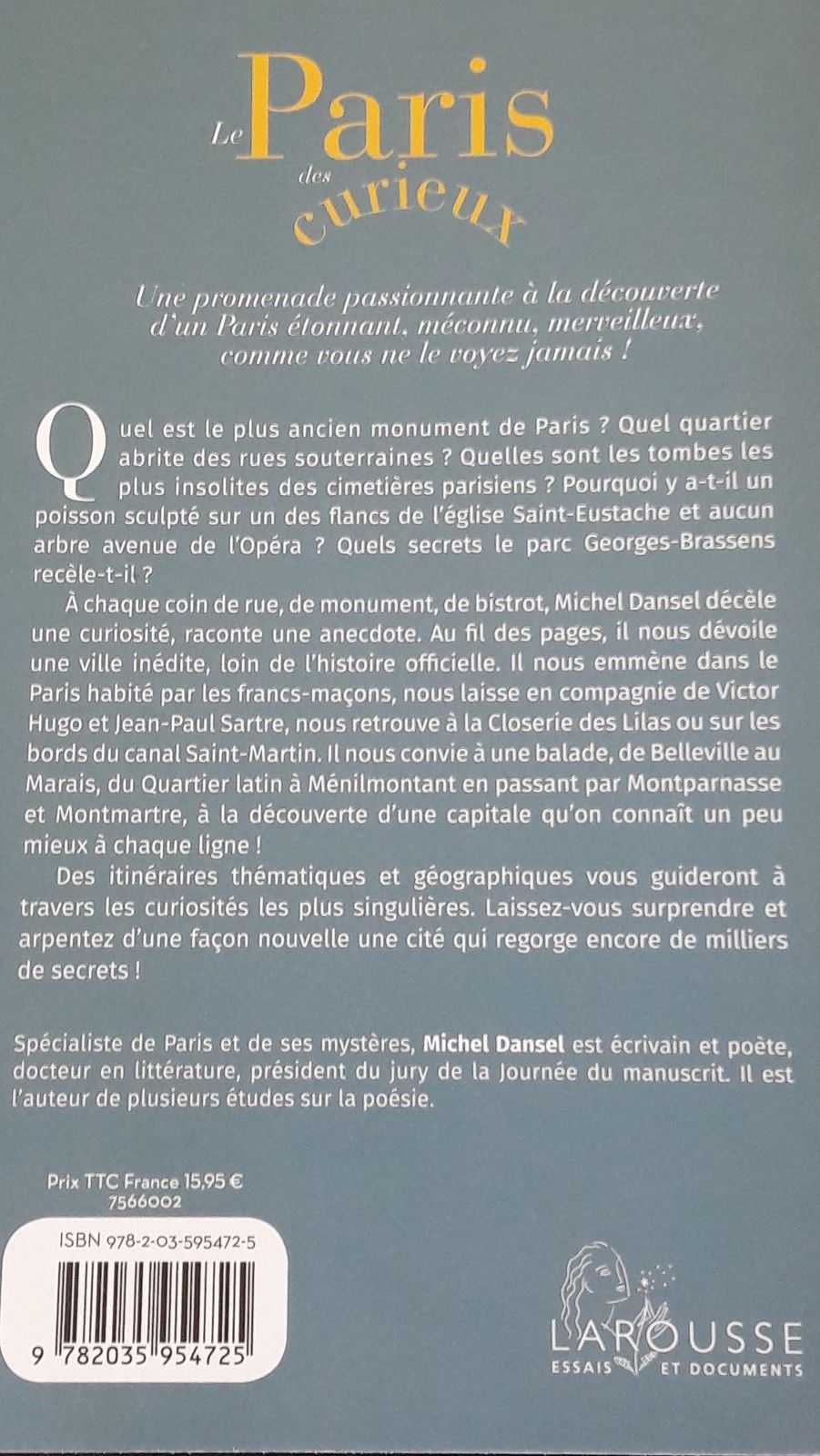 L'auteur : Michel Dansel est spécialiste de Paris et de ses secrets. Ecrivain, poète, docteur en littérature, et président du jury de la journée du manuscrit, il est l'auteur de plusieurs études sur la poésie.
